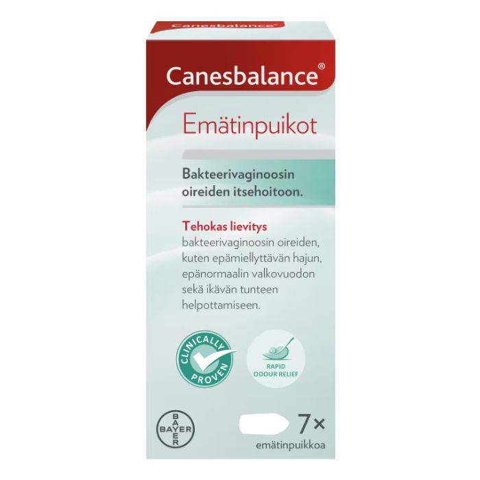 Canesbalance-emätinpuikot lievittävät bakteerivaginoosin oireita, kuten epänormaalia ja pahanhajuista valkovuotoa. Puikkojen sisältämä maitohappo palauttaa emättimen pH-tasapainon. Glykogeeni ravitsee emättimen suotuisia maitohappobakteereita. Haitallisten bakteerien määrä vähenee, ja luonnollinen bakteerikanta palautuu.