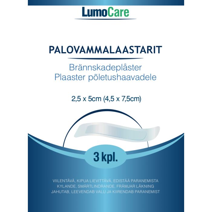 Lumocare palovammalaastari 4,5 x 7,5cm (2,5 x 5cm) 3 kpl