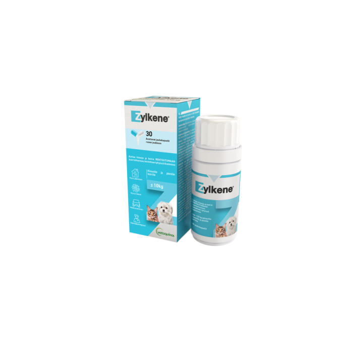 Zylkene ® kapselit sisältävät luonnollista, maitoproteiini kaseiinista saatavaa ainesosaa, jolla on todettu olevan rentouttava vaikutus. Annostellaan koirille ja kissoille ennen normaalista poikkeaviin tilanteisiin joutumista, kuten muutokset ympäristössä, yksin jääminen, muutto, tuntemattomat ihmiset tai eläimet, vieroitus, matkustaminen, ilotulitteiden ampuminen tai mikä tahansa eläimen tavanomaisesta päivärytmistä poikkeava tilanne.